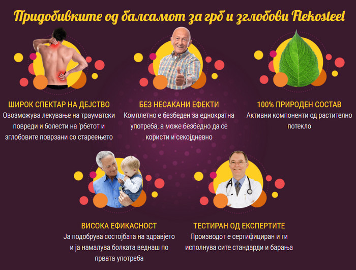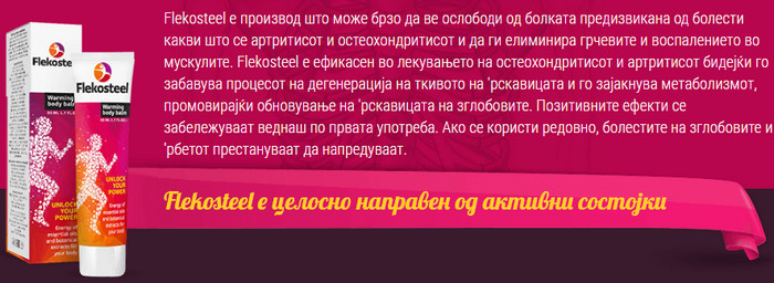 Дали сте ги пробале сите можни маст за затоплување и гелови купени во аптеките, ја запалија кожата со лепенка од пиперка, но мускулите и зглобовите сè уште ви штетат и ве спречуваат слободно да се движите? Flekosteel Youе ви помогнеме. Оваа иновативна алатка е наменета за третман на артритис, артроза, остеохондроза, а исто така ефикасно помага од болка и оток при повреди на зглобовите, лигаментите, мускулите.